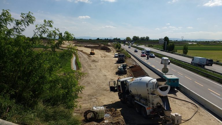 Par ailleurs, le projet prévoit également le ripage de la chaussée Sud de l’A35 existante, avec démolition d’un ouvrage existant (OA9) vers le nord et la construction d’un merlon prolongé à l’est par un écran antibruit afin de réduire les nuisances acoustiques pour les habitations de Geispolsheim Gare.