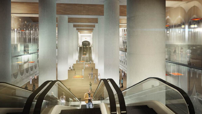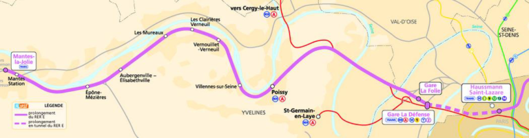 • Construction de 3 nouvelles gares (Porte Maillot, La Défense et Nanterre-­la-­Folie)